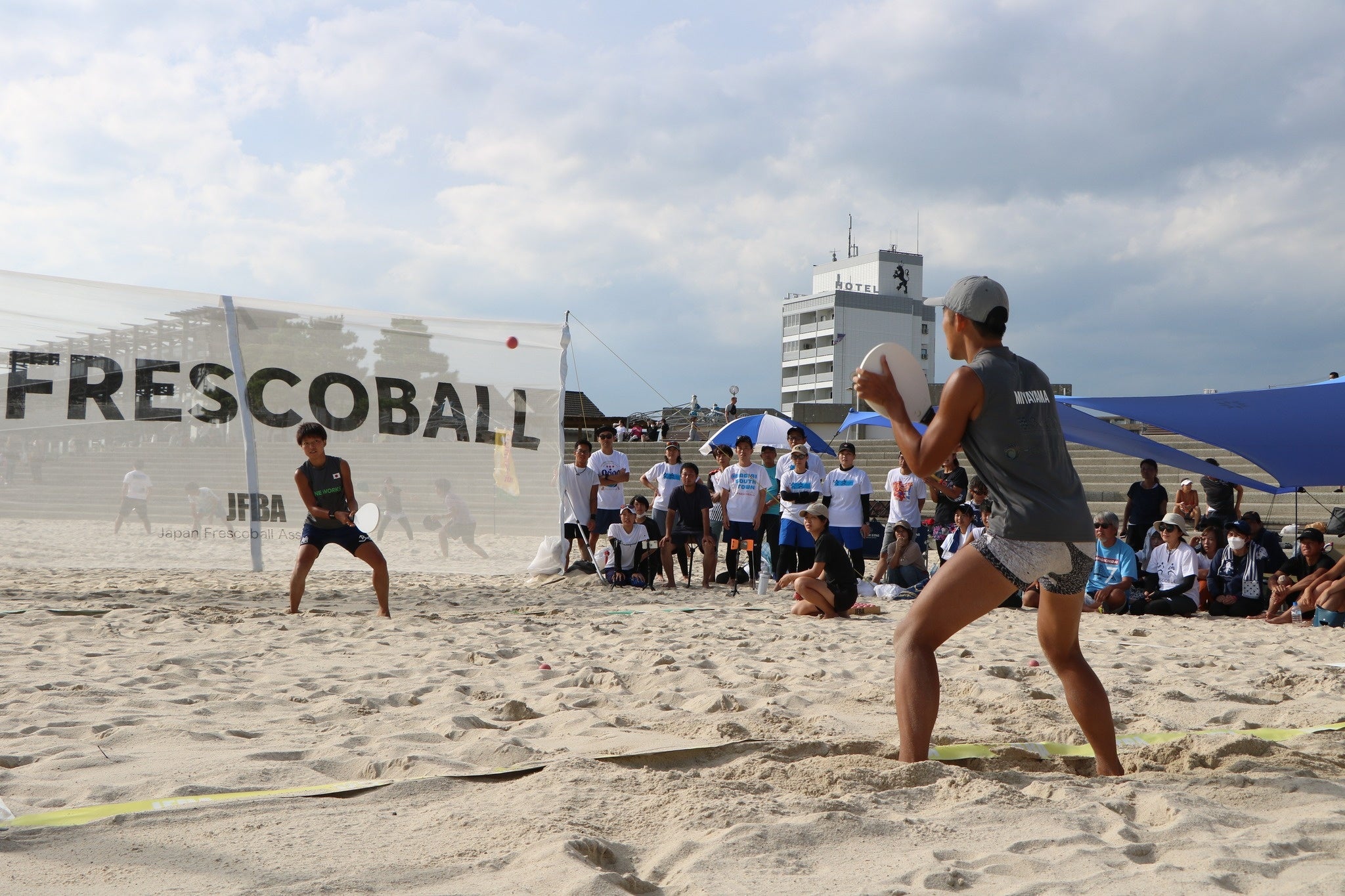 フレスコボールは、ブラジルのリオデジャネイロ発祥のビーチスポーツです。1945年にリオ・デ・ジャネイロのコパカバーナビーチで考案され、現在は世界各地のビーチで親しまれるようになっています。フレスコボールの最大の特徴は、向かい合う2人が競い合うのではなく、協力してラリーを続ける採点競技という点。競技時間は5分間、7mの距離を保って試合を行います。協力してラリーを続ける様子から「思いやりのスポーツ」とも言われます。2023年9月現在、日本全国で26のJFBA公認地域クラブと3の公認学生団体が設立され、フレスコボールを通じた地域コミュニティが形成されています。日本フレスコボール協会は、このスポーツの魅力をより多くの人に知ってもらうために2013年に設立され、2025年までに日本全国47都道府県で地域クラブ設立を目指して積極的に活動を行っております。