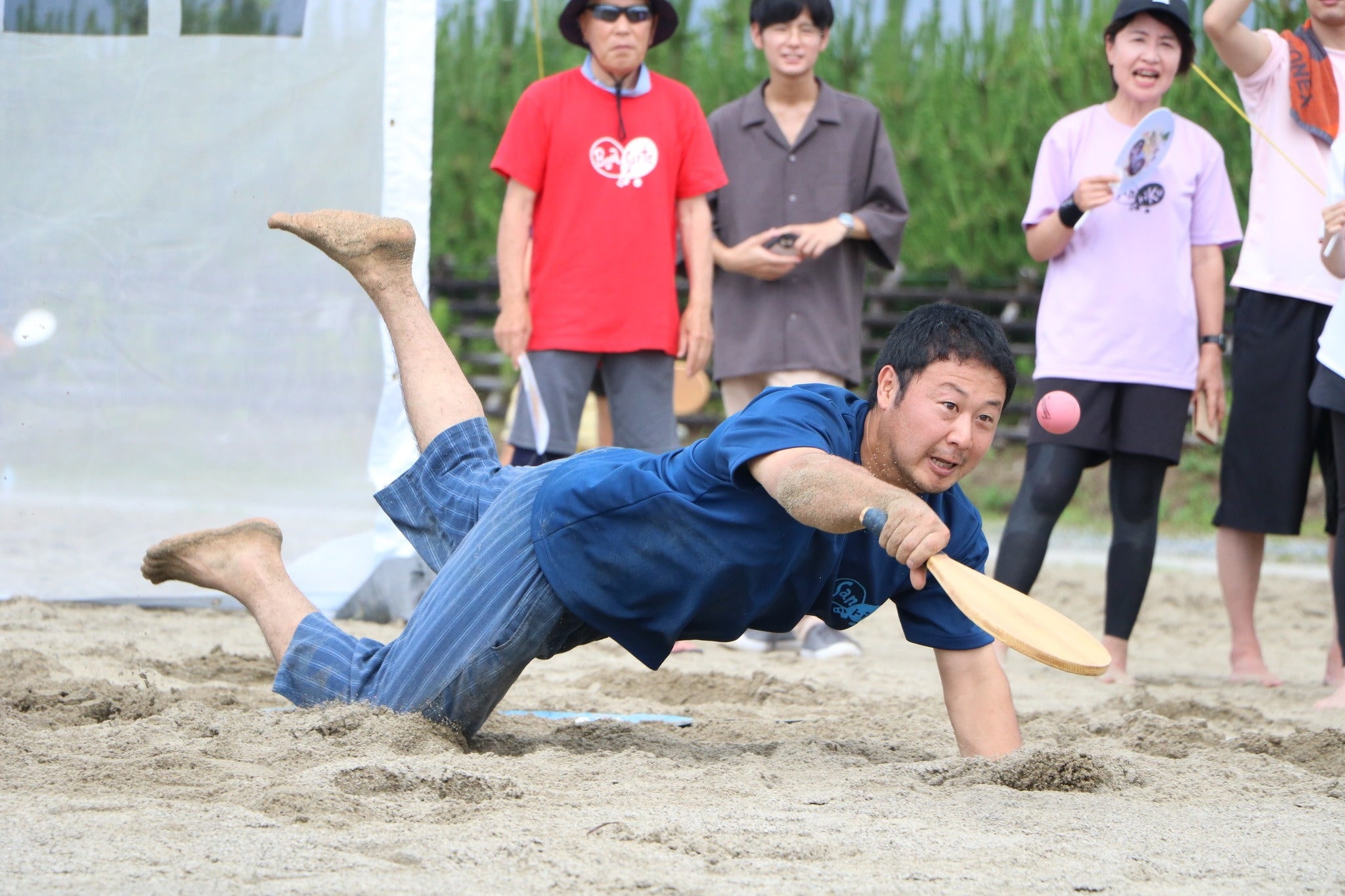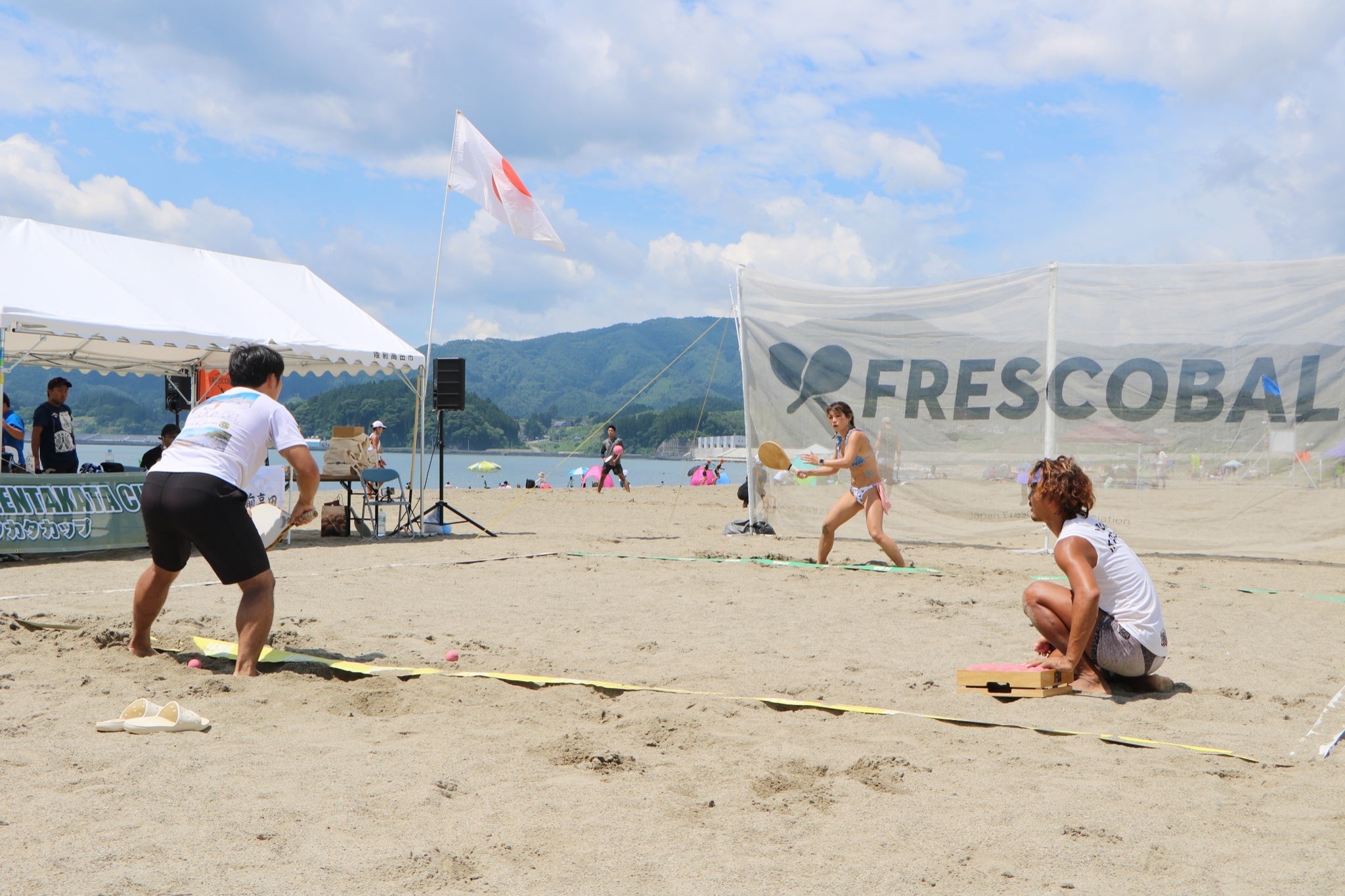 普及が始まったのは、東京で選手活動を行っていた橋詰選手が陸前高田へ移住したことがきっかけ。以降、着実にフレスコボールの輪が広がり、地域の人々によって今日まで活動を継続。2022年より「奇跡の一本松」で知られる高田松原海水浴場で二年連続の公式戦を開催。このほか、地元産材・気仙杉を用いたフレスコボールラケット&トロフィーづくりなど、ユニークな取り組みも多数。最近では、県境を挟んだ宮城県気仙沼に「気仙沼フレスコボールクラブ」も誕生。三陸海岸は、東北におけるフレスコボールの聖地として盛り上がりを見せています。