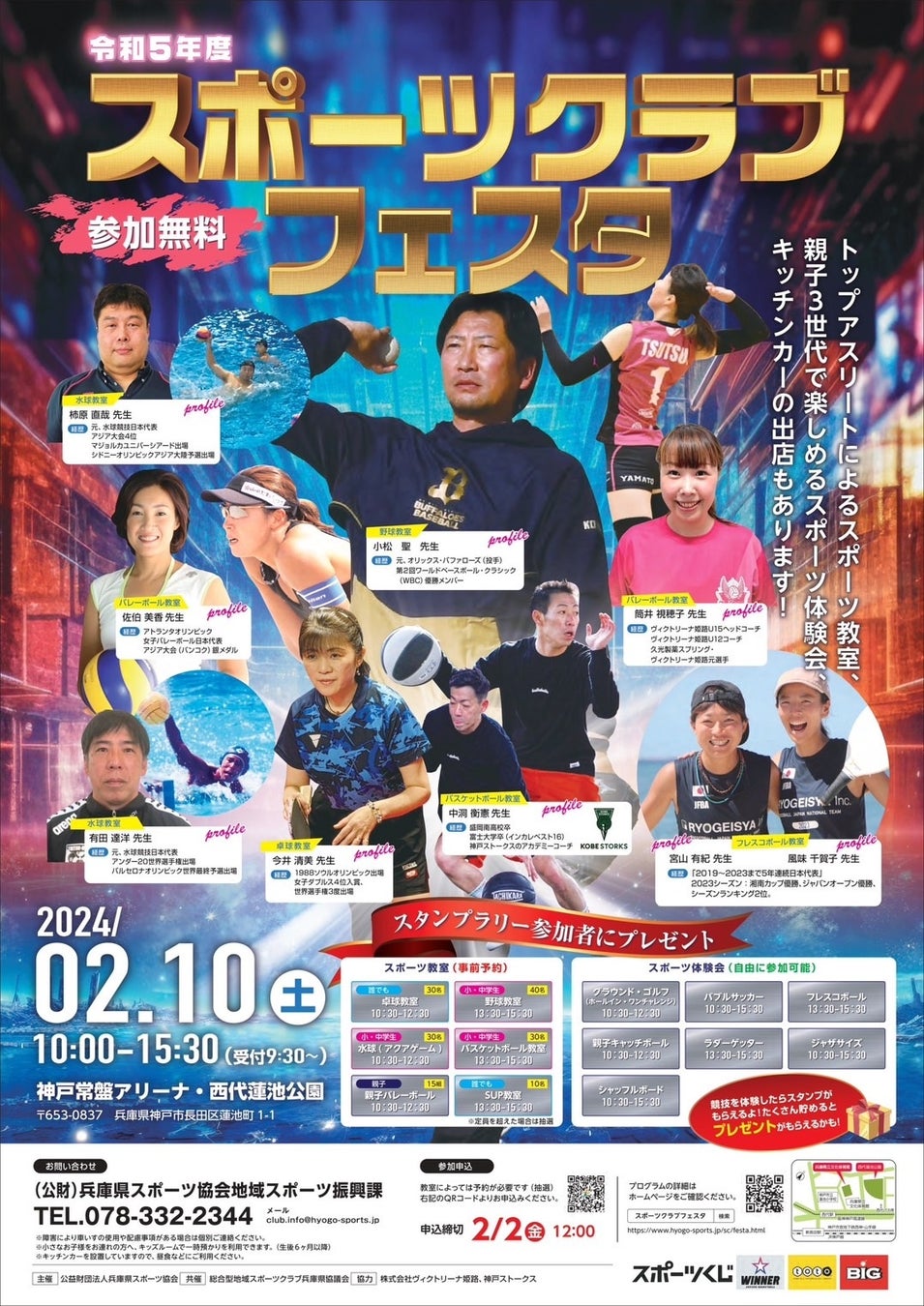 両名が講師として参加する『スポーツクラブフェスタ』は、1日で数多くのスポーツを親子で体験できるイベント。野球、卓球、水球、バレーボール、バスケットボールをはじめ、10を超える競技が集結。講師は、各界のトップアスリートが務め、例えば野球教室では、元オリックス・バファローズ投手で第2回WBC優勝メンバーの小松聖氏、バレーボールでは元オリンピック選手の佐伯美香氏が講師を担当するといいます。
