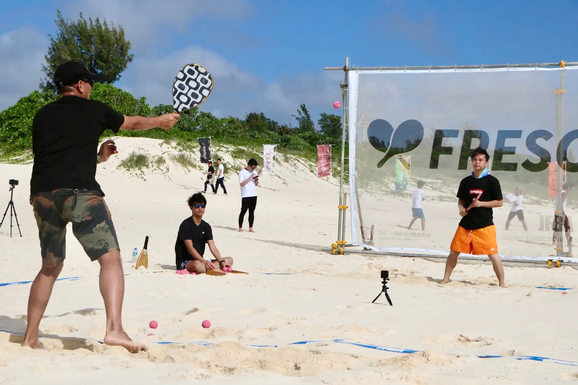 フレスコボールは、ブラジル・リオデジャネイロ発祥のビーチスポーツで、制限時間内のラリー回数を競う「協力型」の競技。相手の打ちやすいところに打ち返す必要があることから「思いやりのスポーツ」と言われています。