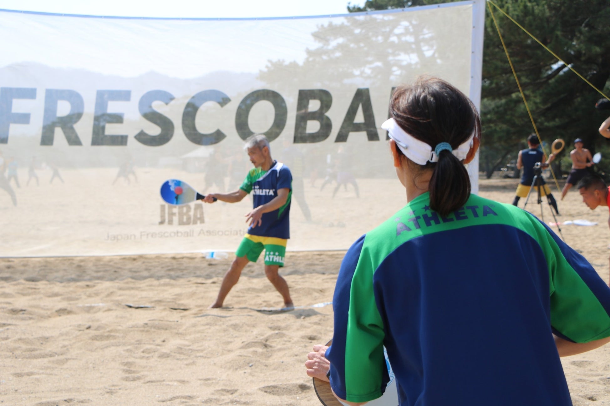 メイン講師には、現日本代表の岸田直也選手(フレスコボール関西GVK所属)、中野克希選手(フレスコボール明石GPA所属)、山下祥選手(同クラブ所属)も参加予定です。テニスと同じくラケットスポーツであるフレスコボールは、1945年にブラジル・リオデジャネイロのコパカバーナビーチで発祥されたペアスポーツ。7m離れて向かい合った二人同士が、ラケットでゴムボールを打ち合い、5分間の制限時間内の総打数やアタック数などを競います。相手が打ち返しやすいところに返球する必要があることから『思いやりのスポーツ』ともいわれています。