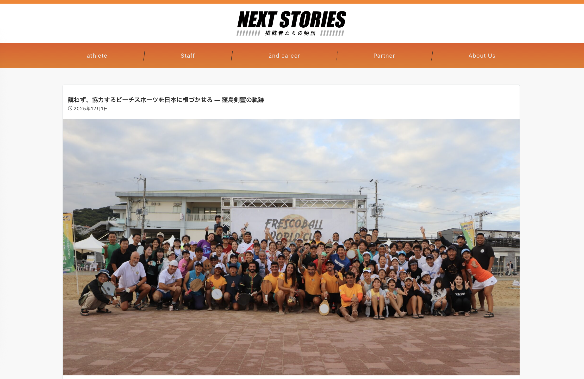 スポーツ系webメディア「NEXT STORIES」にて、日本フレスコボール協会・代表理事の窪島剣璽がインタビューを受けました。テーマは、「競わず、協力するビーチスポーツを日本に根づかせる — 窪島剣璽の軌跡」。ぜひご覧ください。
