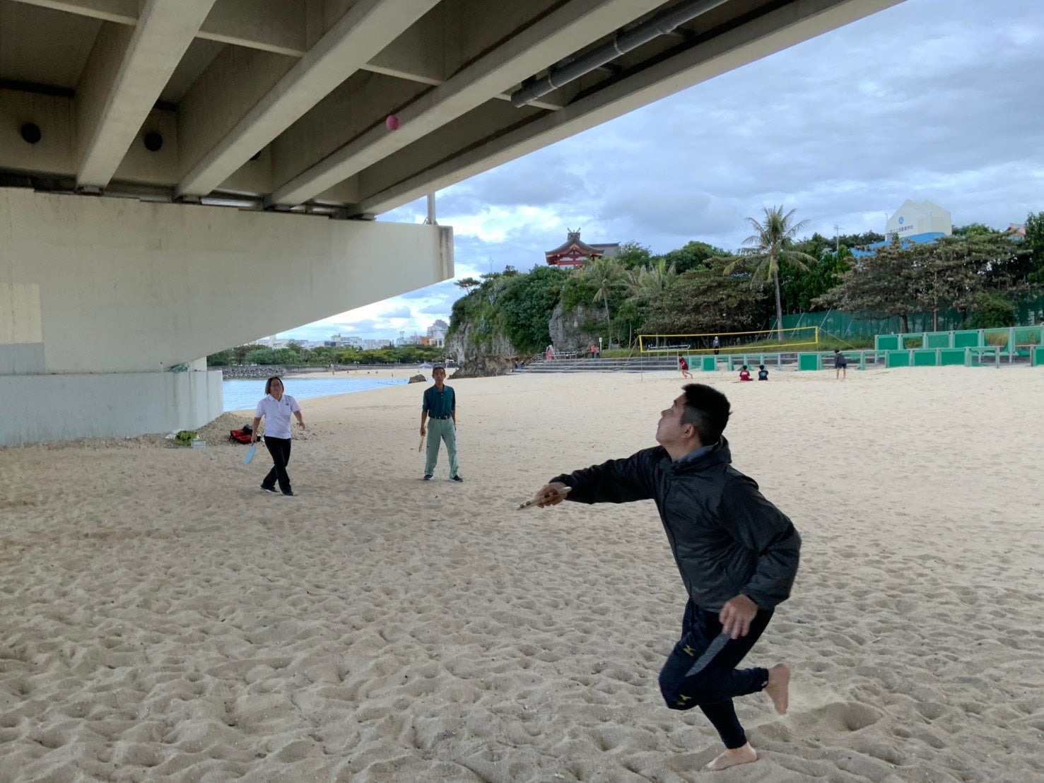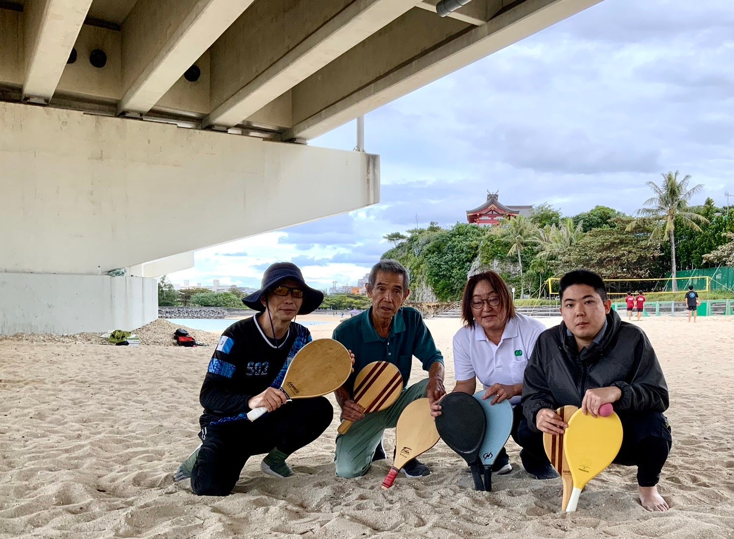 小寺氏自身はフレスコボール発祥の地・リオデジャネイロ在住経験があり、現地で親しんだフレスコボールを日本でも楽しみたいと、2022年6月より沖縄で活動を開始。『日陰』で活動することについて、「沖縄では、ビーチは、木陰でおしゃべりをするか、BBQをする場所で、炎天下で運動をする文化はありません。日焼けを嫌う県民も多いので、日陰を厳選して活動しています」とコメント。