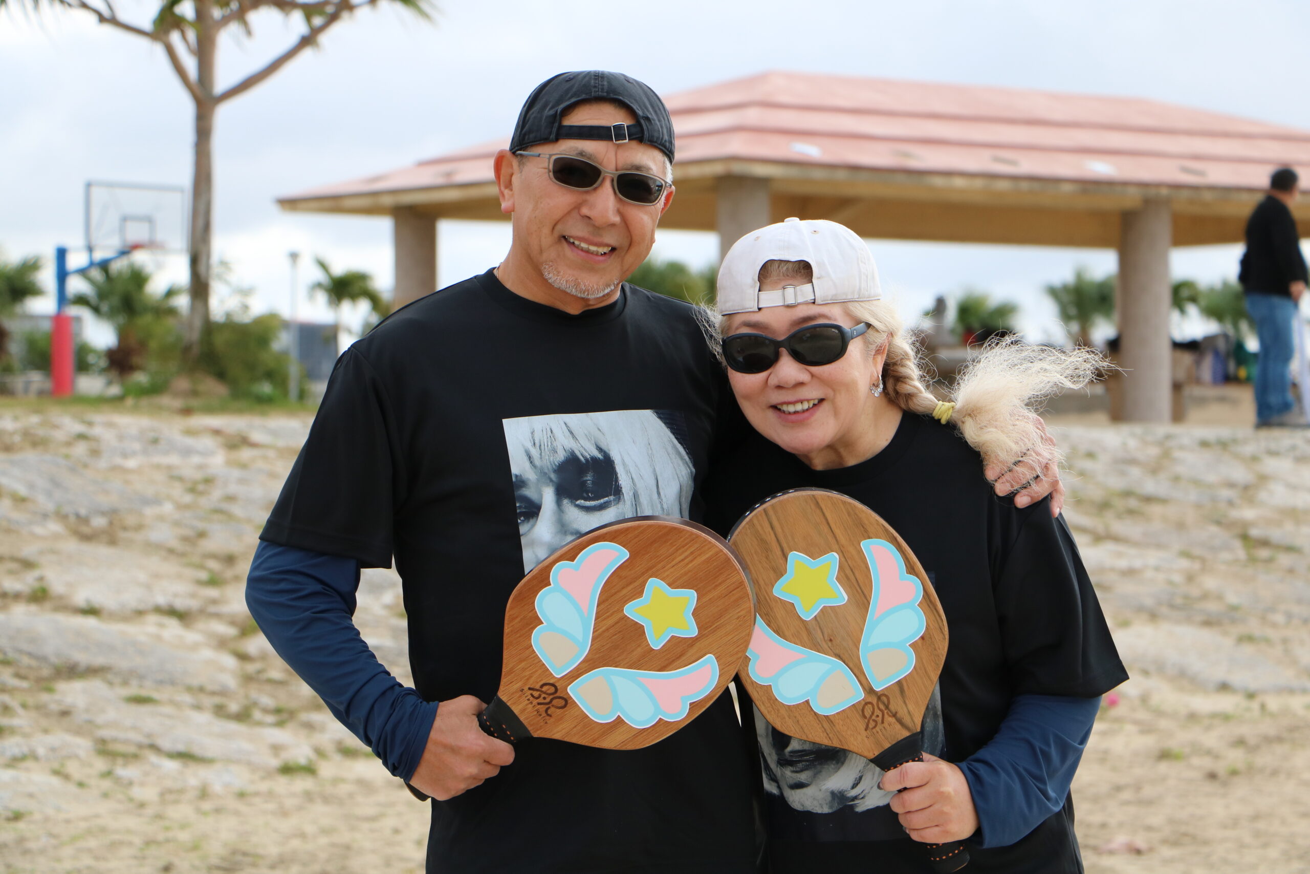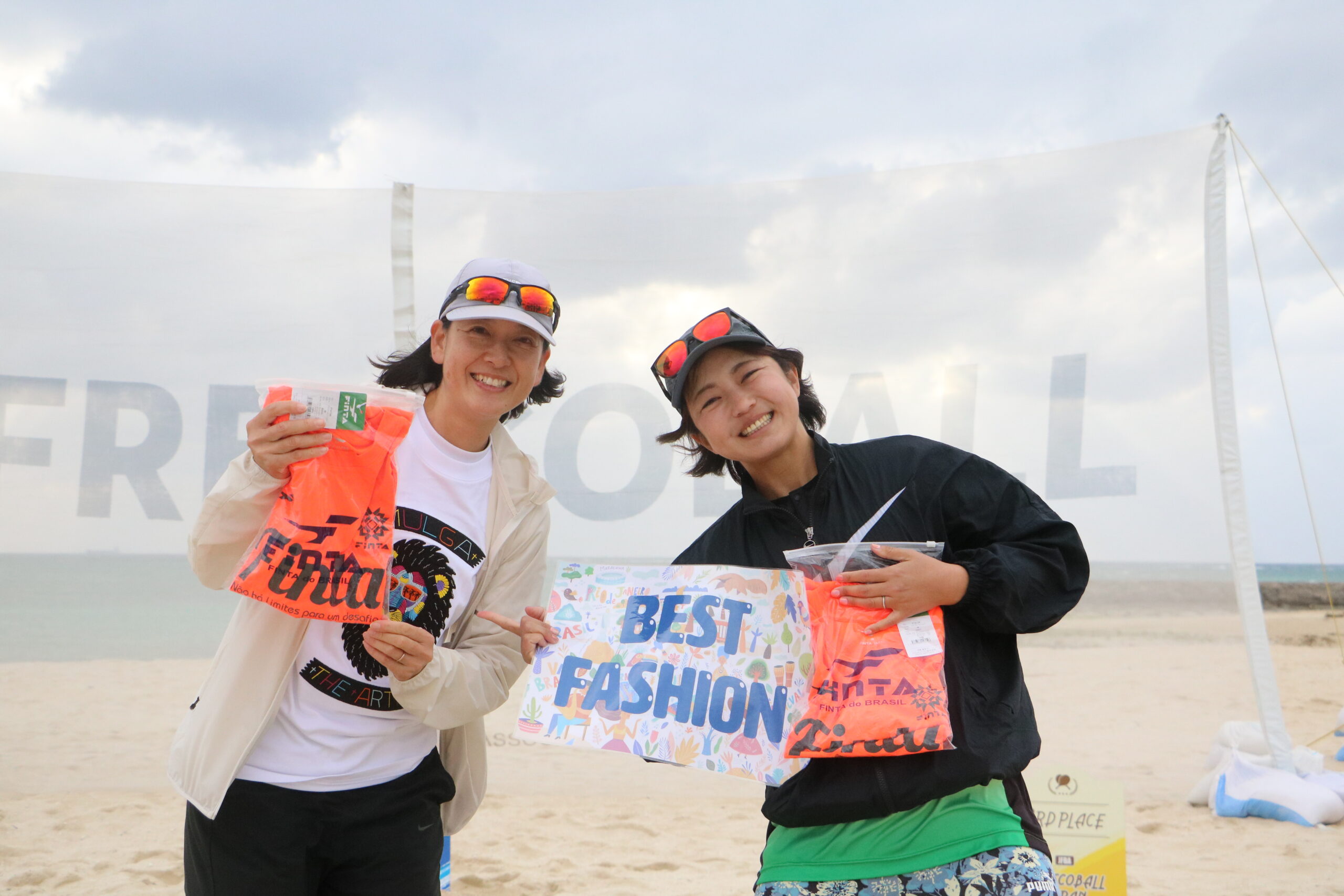 シドニーのイラストレーター「MULGA」によるデザインTシャツで登場したお二人。牛田選手は白地にライオン、山下選手は黒地に虎と、カラー違いでリンクさせたコーディネートが印象的でした。聞くと、来沖してから偶然ゲットとしたというこのシャツ。存在感のあるデザインと、さりげない統一感が、会場に華を添えてくださいました。日本中を旅する「TOUR」を丸ごと楽しんでいる感じをスタッフ一同うれしく思います。そんなお二人には、JFBAから副賞としてFINTAのシャツが贈られました。受賞おめでとうございます!