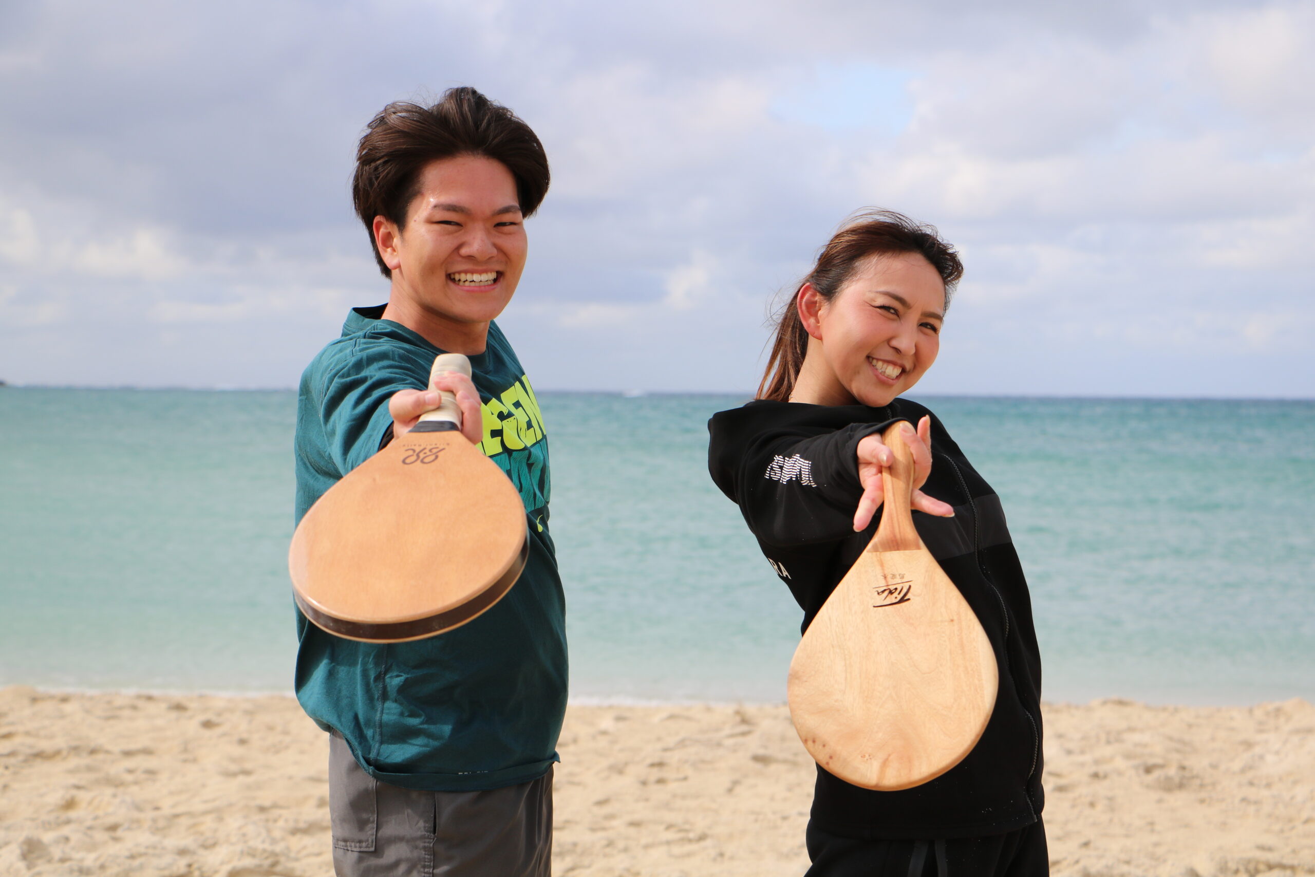 フレスコボール選手の鈴木麻衣子、ビーチテニス選手の柴山葵によるペアが1,000ptを記録して優勝。競技を越えて試合にチャレンジする、まさに「沖縄ビーチスポーツフェスティバル」のシンボル的なペアとなりました。特に柴山選手は、ビーチテニスのトップ選手だけにラケットさばきも一級品。アタックバランスは「79」⇔「75」を記録するなど、デビュー戦にして熟練ペアのような結果。丁寧にボールをつなぐ姿も印象的でした。今後のさらなる参戦も大歓迎。また待っています!