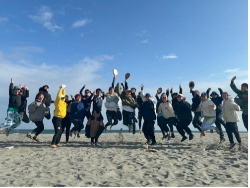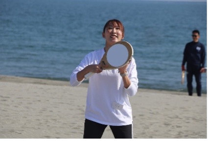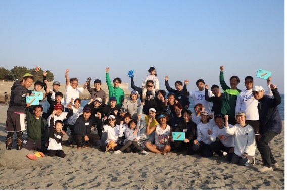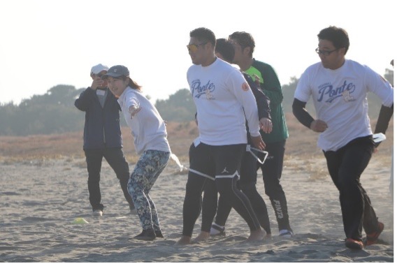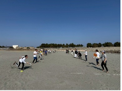 快晴のビーチで40名以上がラリーする光景は圧巻でした。大人になってからの本気の遊びにも、終始楽しい声がはじけていました。