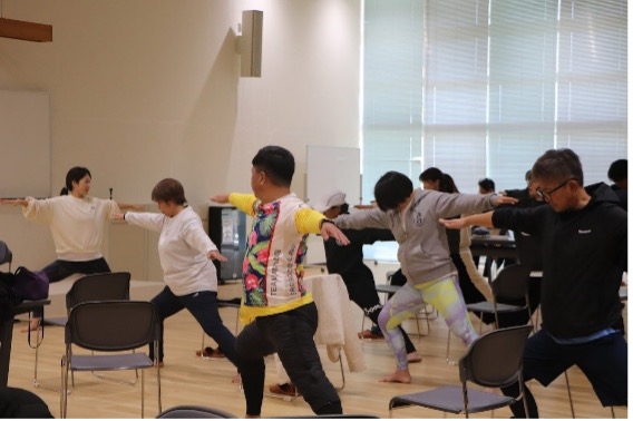 2日目は、ヨガインストラクターの資格を持つメンバーによる「フレスコボーラーのためのヨガ」と、チーム対抗の団体戦を行いました。