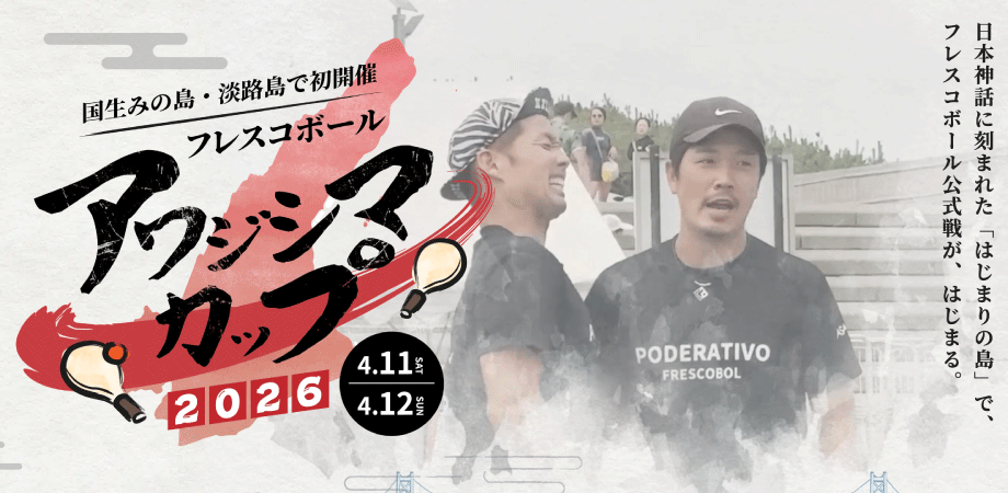 FRESCOBALL JAPAN TOUR 2026 第3戦「フレスコボールアワジシマカップ2026」が、4月11-12日にて兵庫県洲本市・大浜公園にて開催されます。淡路島での公式戦開催は初!多くの選手のエントリーをお待ちしております。
