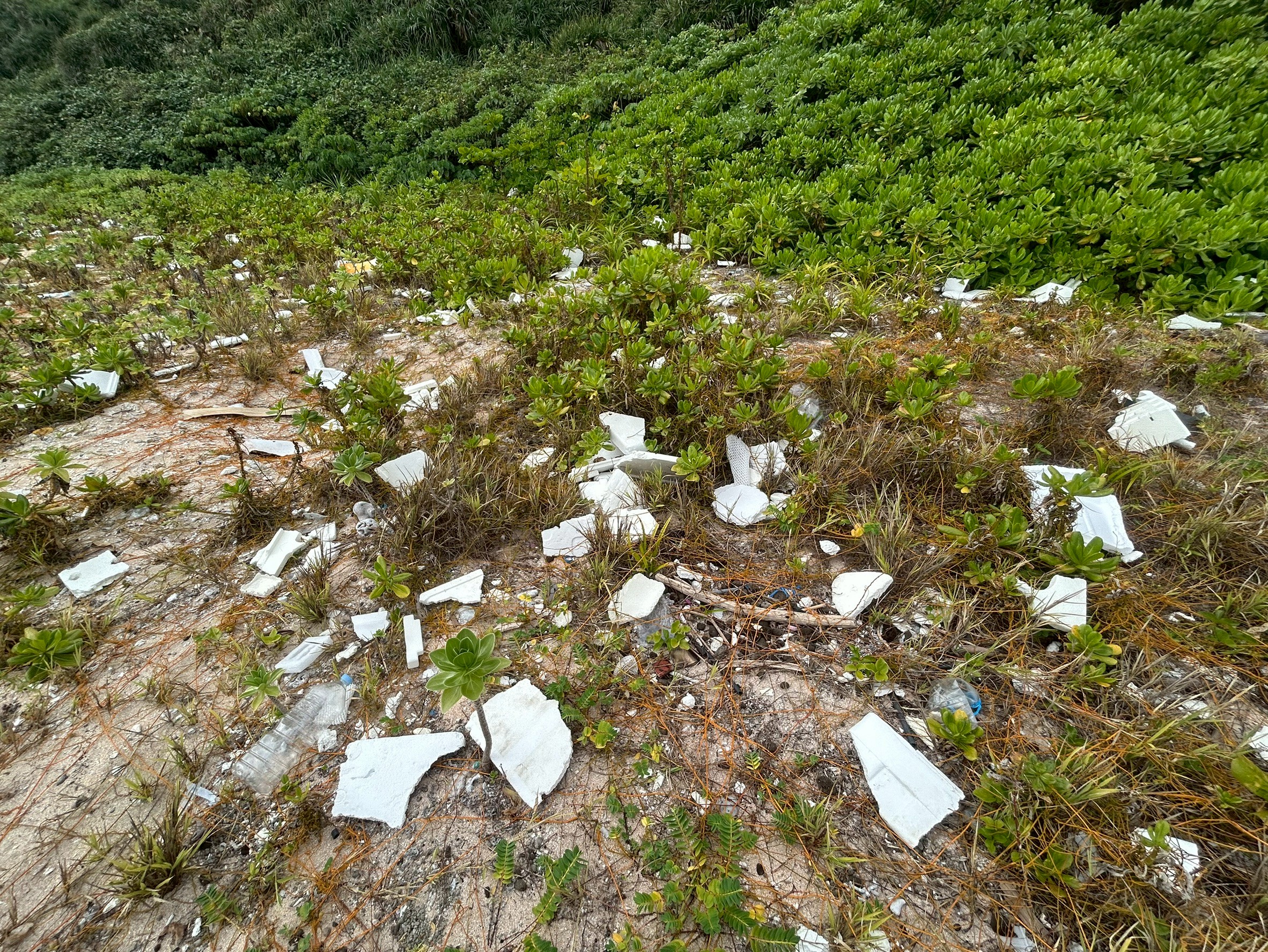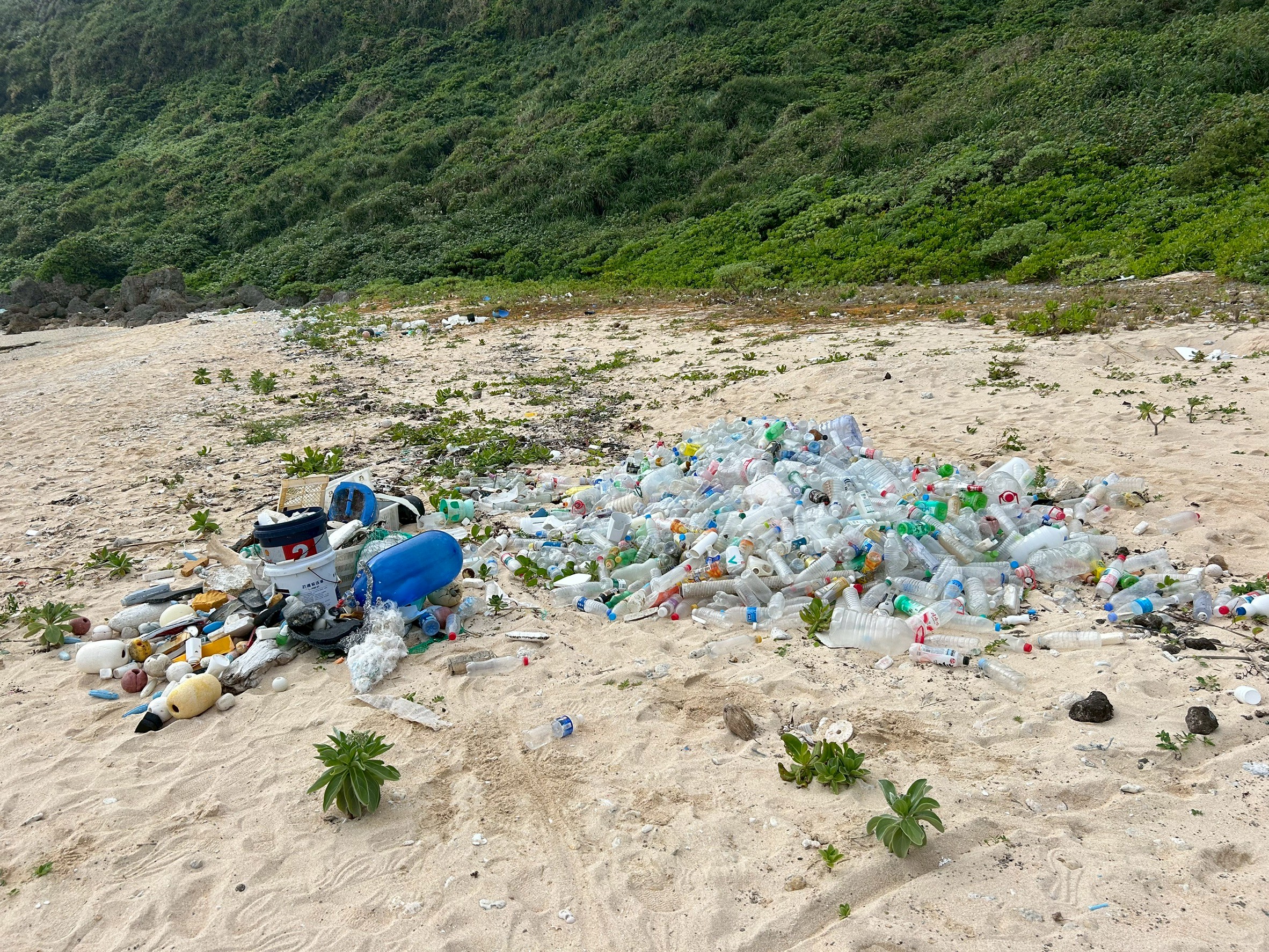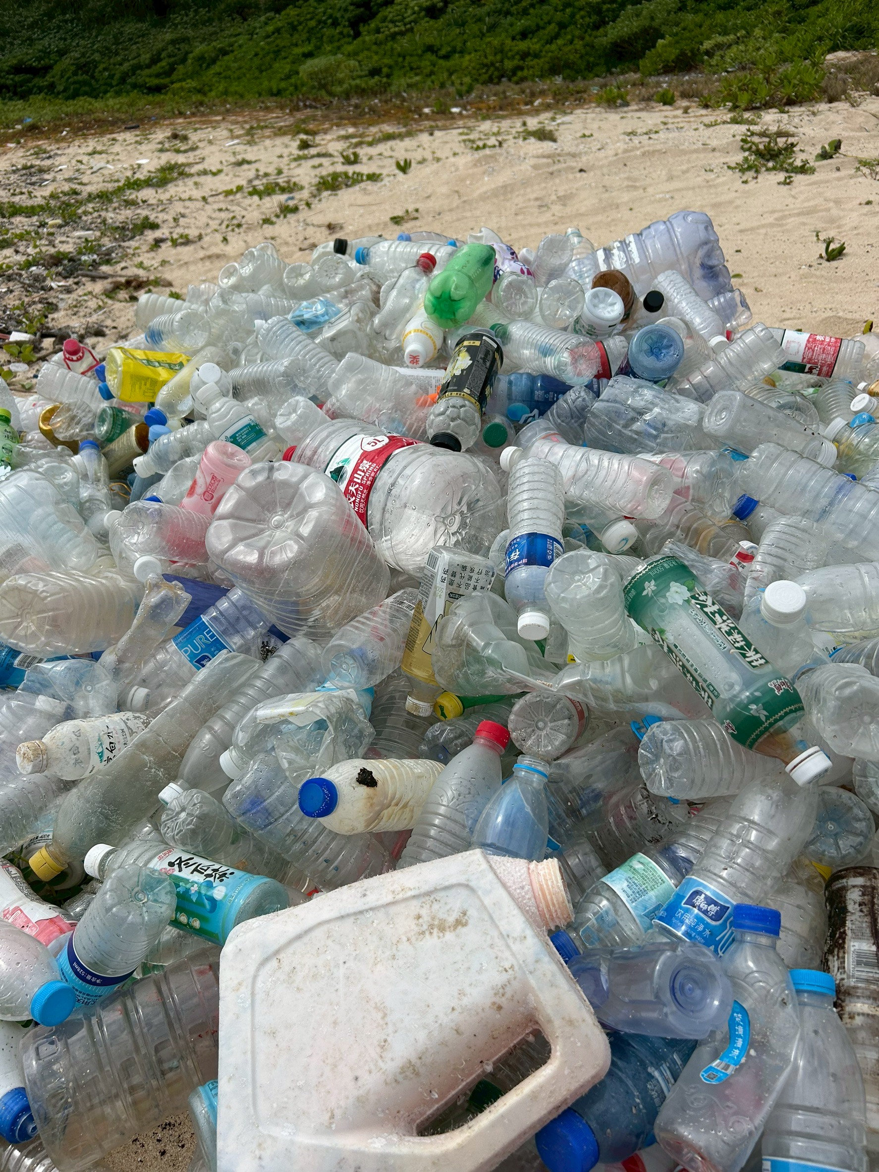 なんと、このごみの山が数百メートルにわたって続くのです。聞くと、冬の北風の影響で毎年この季節には大量のごみが宮古島東部に流れ着くのだそう。これを毎年、指定管理の方々やサーファーの皆さんが一つずつ回収しているといい、頭が下がります。