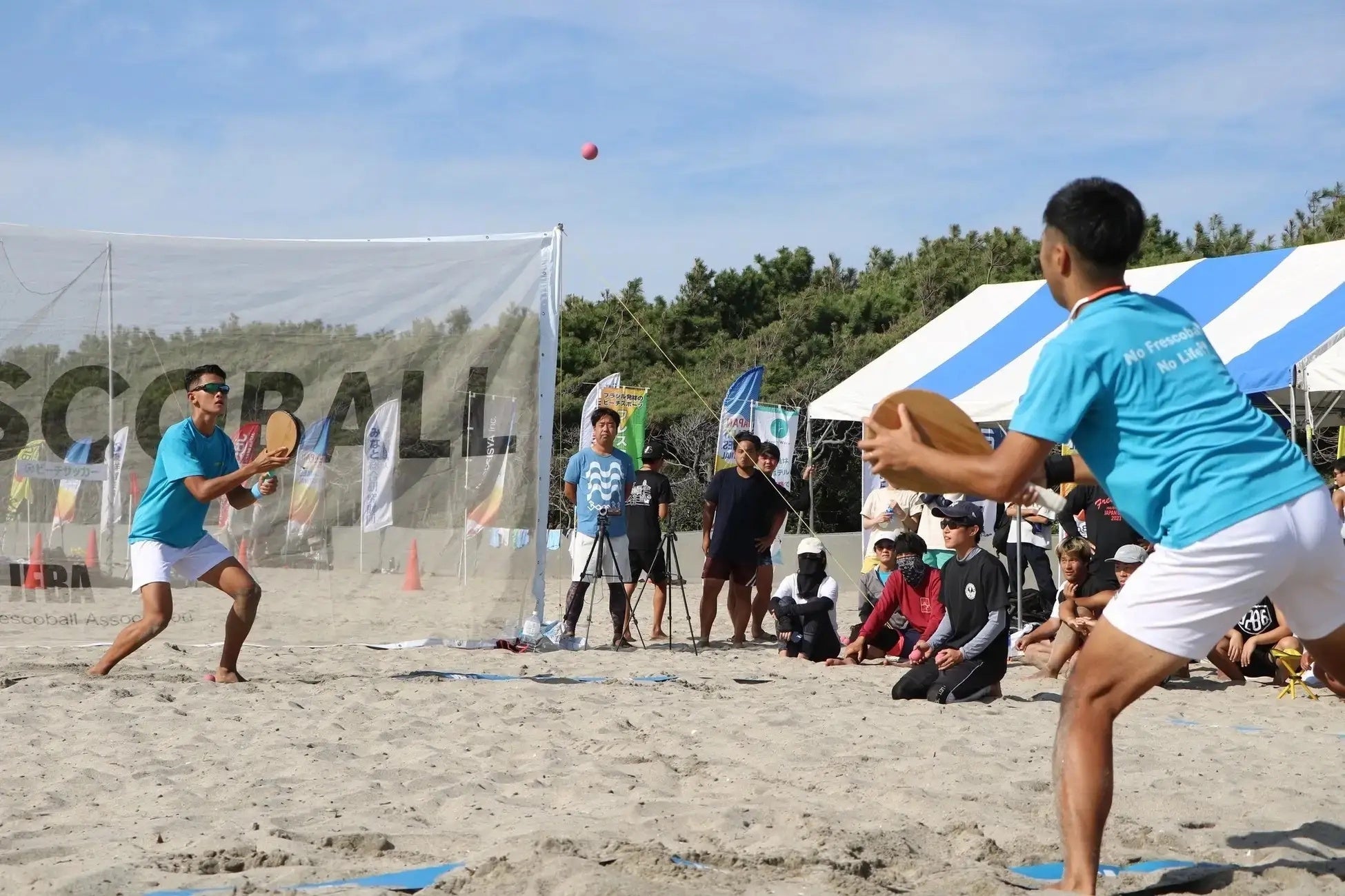 フレスコボールは、ブラジルのリオデジャネイロ発祥のビーチスポーツです。1945年にリオデジャネイロのコパカバーナビーチで考案され、現在は世界各地のビーチで親しまれるようになっています。フレスコボールの最大の特徴は、向かい合う2人が競い合うのではなく、協力してラリーを続ける採点競技という点。競技時間は5分間、7mの距離を保って試合を行います。協力してラリーを続ける様子から「思いやりのスポーツ」とも言われています。JFBAでは、国際的なルール統一に向けてリオフレスコボール連盟(FEFERJ)と世界初の国際組織『UAFI』設立に向けて2025年10月に基本合意。世界のフレスコボール界を一つにする動きを進めています。国内では、29の公認地域クラブと5の公認学生団体が登録されています。