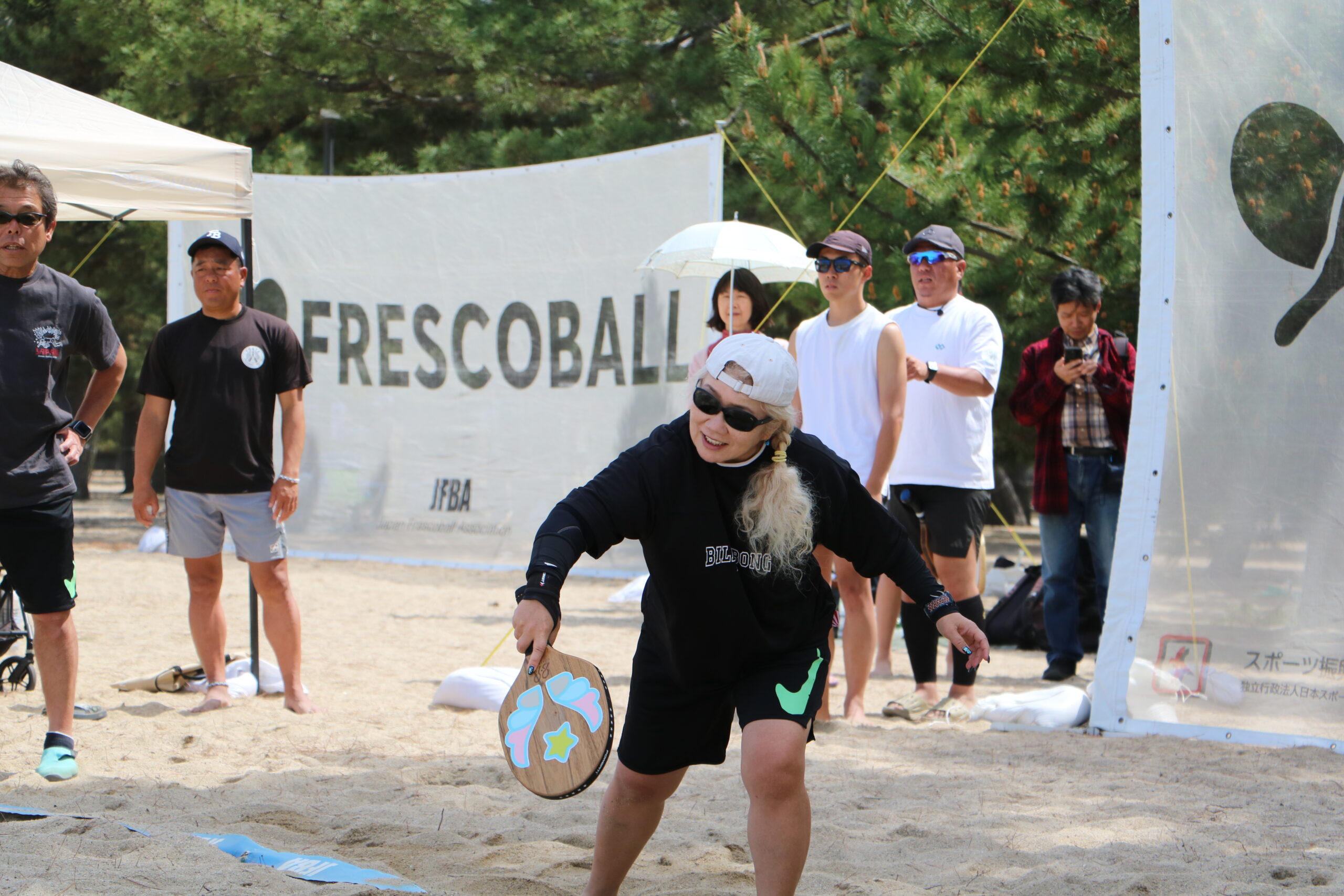 白のTシャツに、水色であしらわれた「smile & Rally」のメッセージが印象的なリンクコーデで登場。背面には波を思わせるデザインも取り入れられ、淡路島のロケーションにもマッチした爽やかなスタイルで会場の視線を集めました。家族で揃えたコーディネートからは、コート内外でフレスコボールを楽しむ姿勢が自然と伝わり、会場全体を明るい雰囲気に包み込む存在に。プレーだけでなく、その一体感も含めて印象に残るスタイルとなりました。協賛「リードオフジャパン株式会社」様から、「ズブロッカ アップルズー」が贈られました。おめでとうございます!